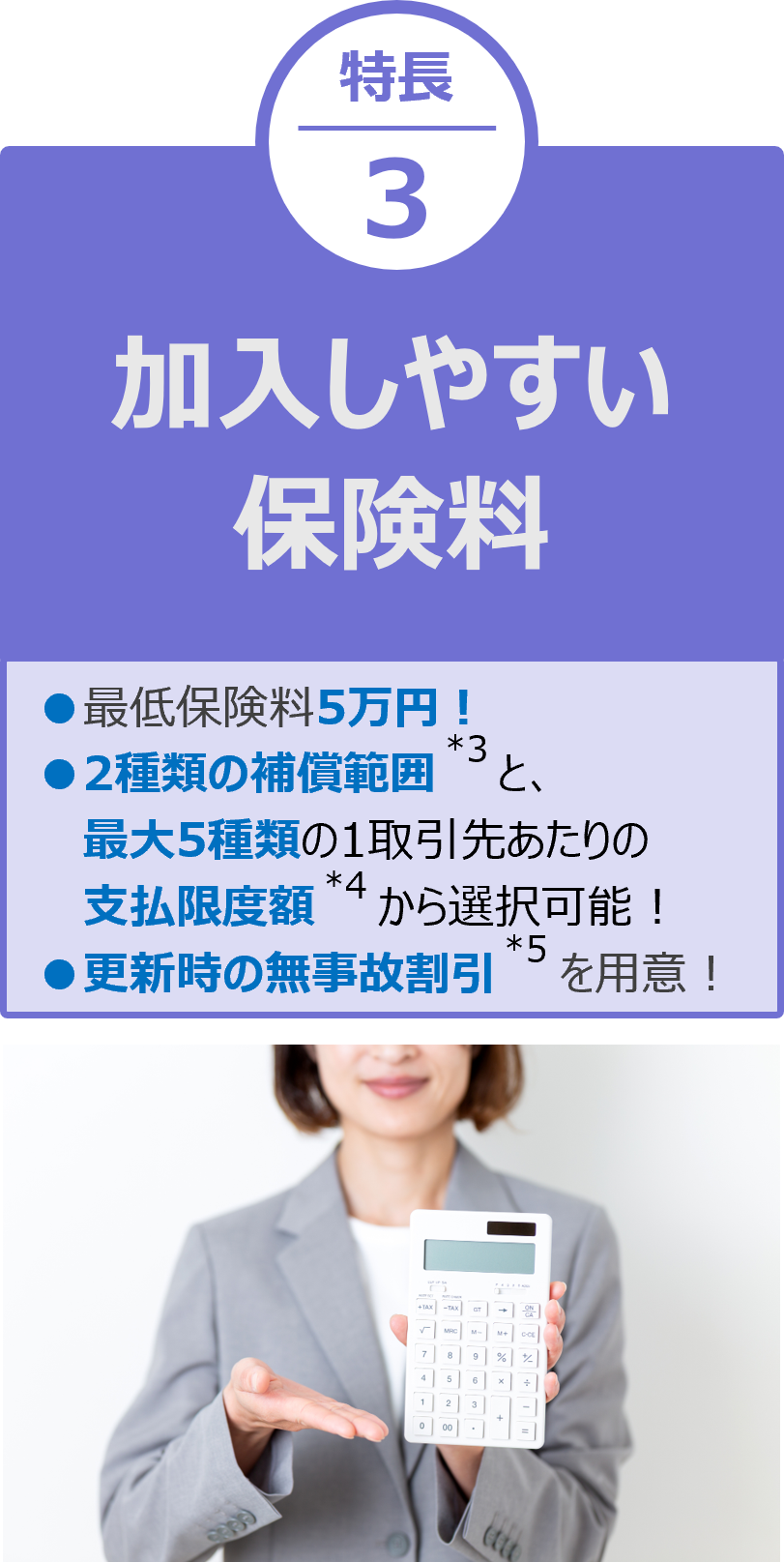 「売買契約、請負契約に基づく代金債権」が補償の対象となります。賃貸借契約、リース契約、融資契約等は補償対象外です。