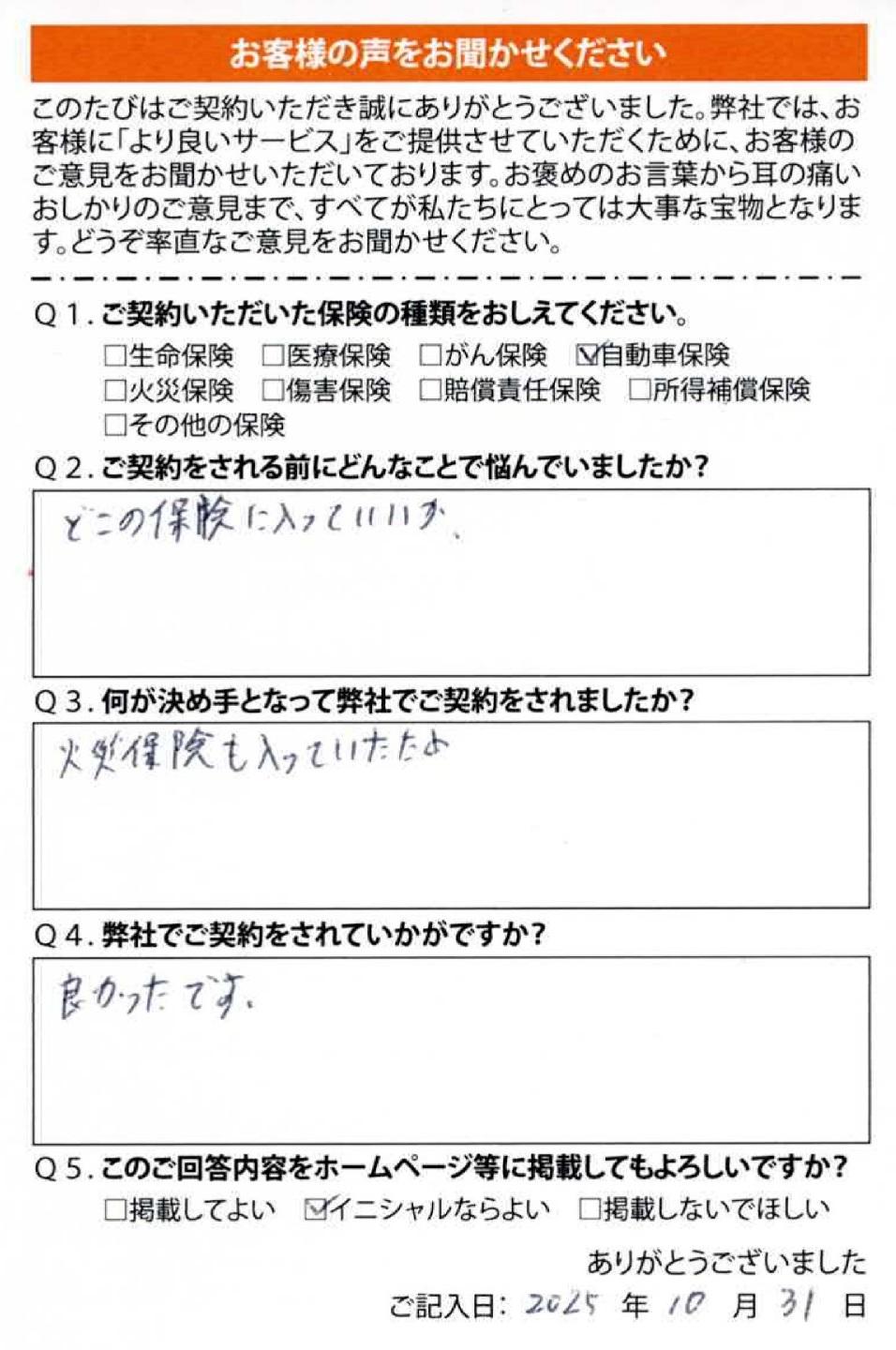 ▶日立市 Oさま(自動車保険・火災保険)