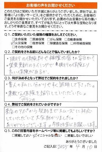 ▶日立市 Kさま(火災保険)